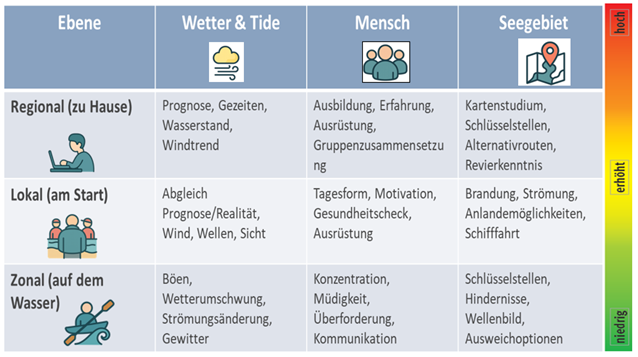 Der Seekajaksport verlangt von Praktikern robuste Entscheidungen unter Unsicherheit,
